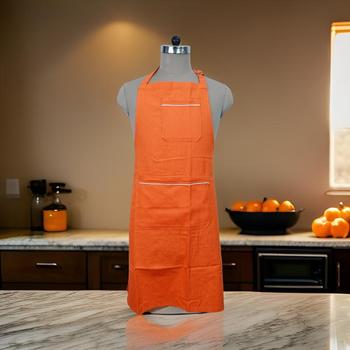 Delantal de cocina de algodón vaquero naranja de doble bolsillo de alta calidad con correas ajustables para hoteles y tipo de cintura de uso doméstico